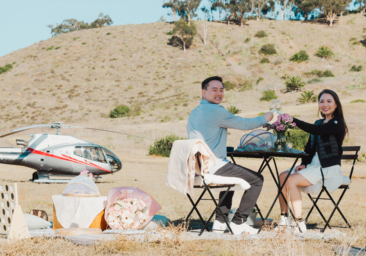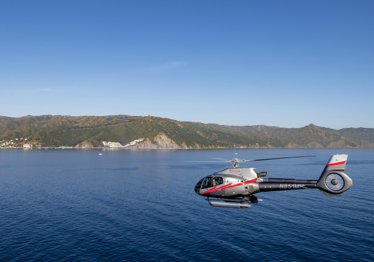 Embark on an intimate helicopter excursion to Catalina Island, featuring breathtaking scenery paired with an upscale picnic of gourmet delights.